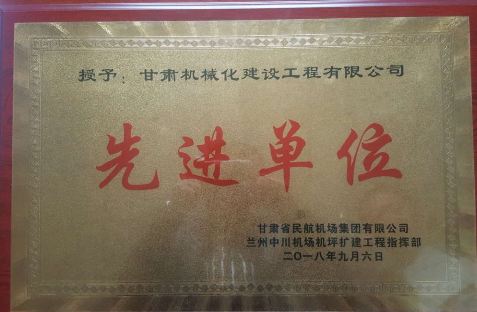 8月20日在監理部門的組織下進行的竣工預驗收,鑒于我項目部的抗洪救災中以及施工期間的優異表現,甘肅省民航機場集團有限公司及蘭州中川機場機坪擴建指揮先后對我項目部進行通報表揚以及授予我單位“先進單位”的榮譽稱號。