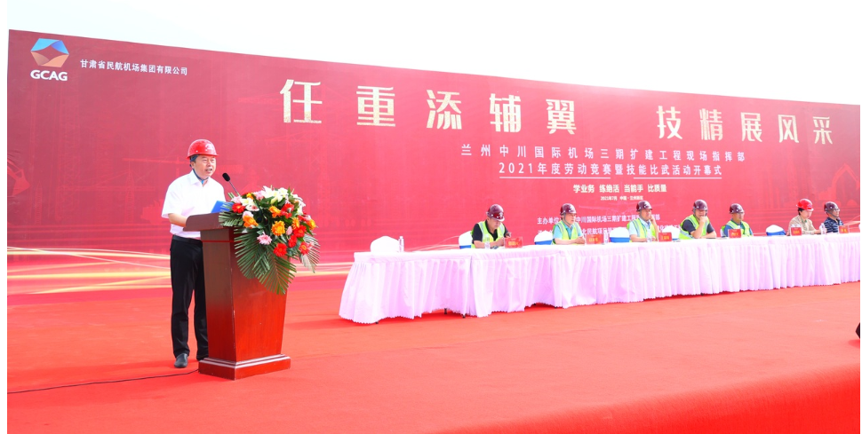 7月27日上午,由蘭州中川國際機場三期擴建工程現場指揮部主辦,我司與西安西北民航項目管理有限公司承辦,為期兩天的蘭州中川國際機場三期擴建工程2021年度“勞動競賽曁技能比武”活動順利開幕。蒞臨開幕式的領導有蘭州市蘭州新區黨群部秦副部長、蘭州市西固區總工會楊主席、蘭州中川國際機場三期擴建工程現場指揮部黨委書記、指揮長,黨委副書記、常務副指揮長等領導,以及我司黨委書記、副總經理和來自8家參賽單位的領導和參賽選手。