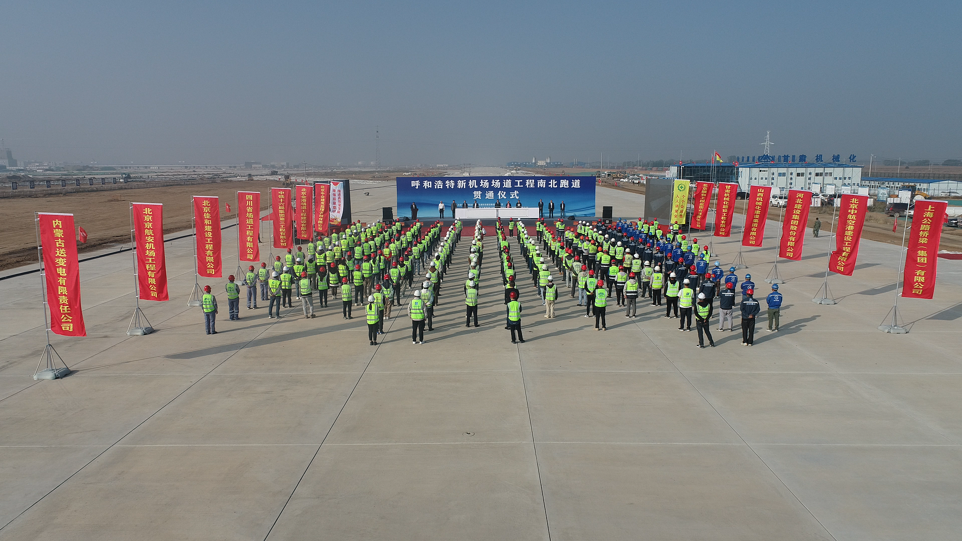 9月26日,呼和浩特新機場場道工程南北跑道貫通儀式在呼和浩特新機場施工現場舉行。公司黨委書記參加貫通儀式并代表飛行區場道施工單位致詞。